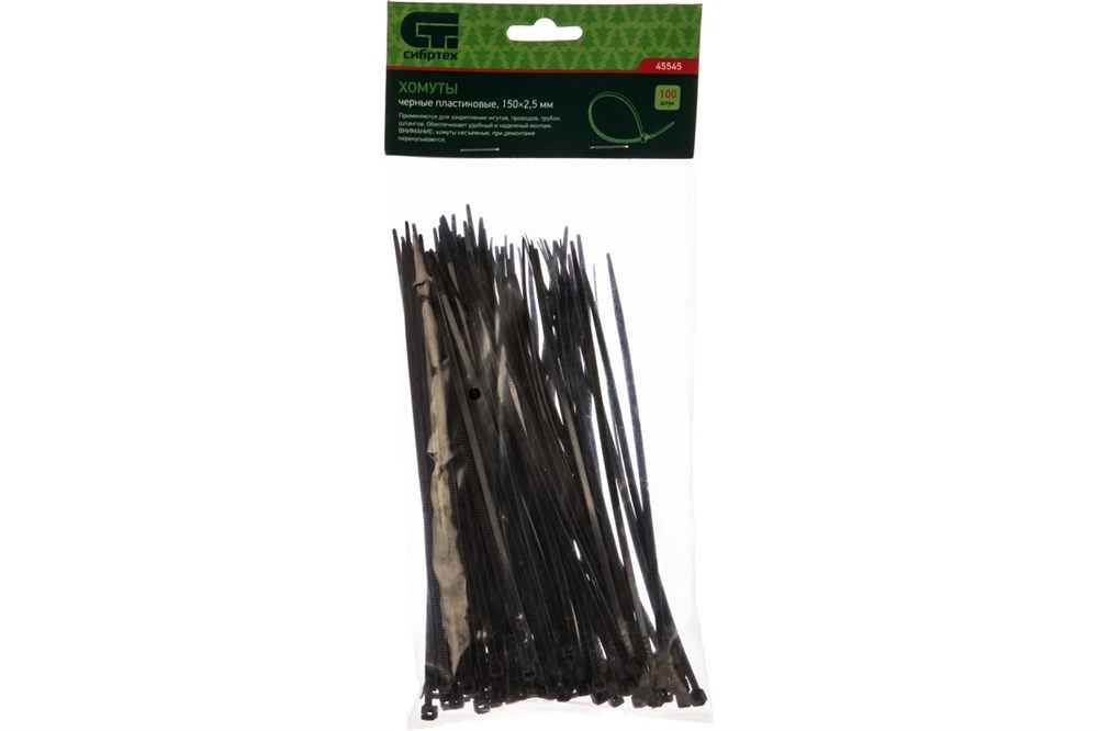 Хомут/кабельная стяжка СИБРТЕХ 45545, 150х2.5мм, черный, пластиковый, 100шт. в упаковке