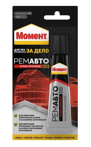 Клей «Клей универсальный Момент Ремавто особопрочный» необходимо равномерно наносить на обе склеиваемые поверхности, особенно тщательно по краям.
