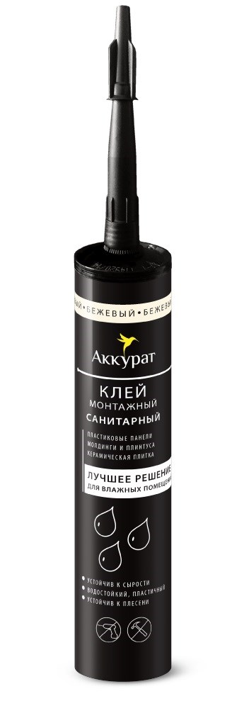 Клей монтажный Аккурат, 280мл, санитарный, бежевый