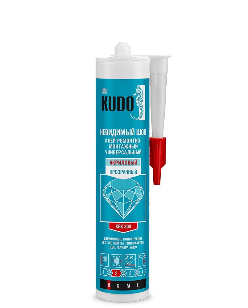Высококачественный универсальный акриловый клей «невидимый шов» KUDO® специально разработан для приклеивания изделий из древесины, ДСП, ДВП, EPS, XPS и UPVC на бетонные, кирпичные, каменные, металлические, оштукатуренные и деревянные поверхности. Идеально подходит для сборки деревянных конструкций, приклеивания гипсокартона, OSB плит, декоративных элементов, подоконников, утеплителей различных видов. После высыхания образует эластичную прозрачную плёнку.