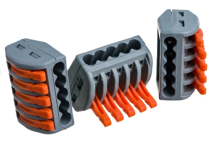 Соединительная многоразовая клемма REXANT на 5 проводников с плоско-пружинным зажимом предназначена для подсоединения медных одножильных и многожильных зачищенных проводников тонкого сечения. Перед монтажом с соединяемых проводников необходимо снять изоляцию в соответствии с обозначениями на корпусе клеммы (9-12 мм). Зачищенный участок с монтажной стороны не должен иметь сильных изгибов. Вставьте его в свободное гнездо клеммы, предварительно подняв оранжевый рычажок, после этого опустите рычажок в исходное положение. Контакт осуществляется путем зажима проводника пластиной. Конструкция предотвращает случайное размыкание контакта. Специальное технологическое отверстие на корпусе клеммы предназначено для проверки соединения тестером-пробником или щупом мультиметра. Извлечение проводника (демонтаж) осуществляется действиями в обратном порядке.