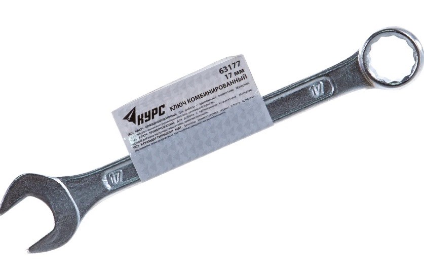 Ключ комбинированный Курс 63177, 17мм, оцинкованная сталь