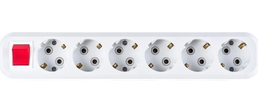 Колодка для удлинителя MAKEL MGP231, шестиместная, 16А, 250В, IP20, 3500Вт, с заземлением, с выключателем, АБС-пластик, белый