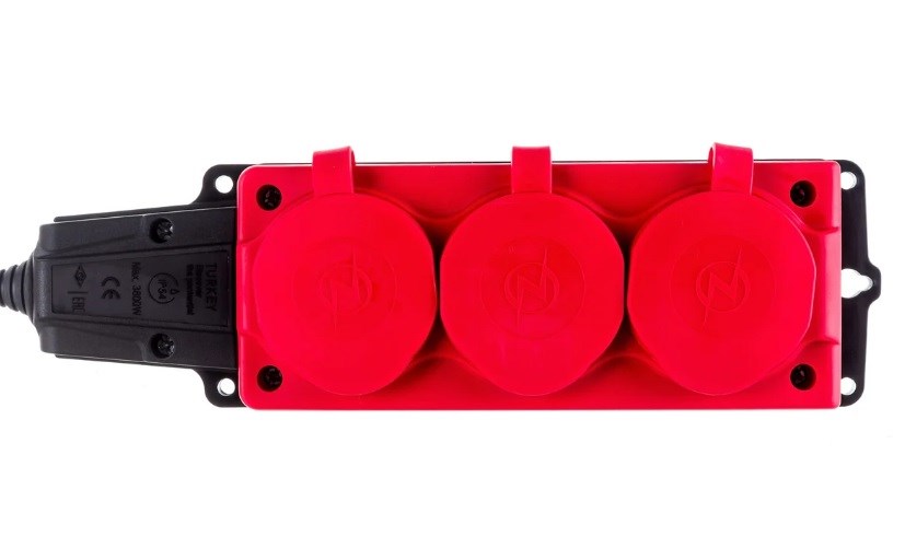Колодка для удлинителя NE-AD 4123, трехместная, 16A, 220-240В, IP54, 3500Вт, с заземлением, с заглушкой, каучук, красный