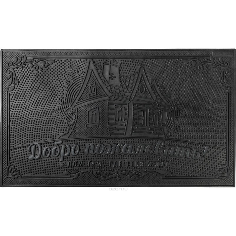Коврик придверный АМ Добро пожаловать, 40х60см, черный, резиновый