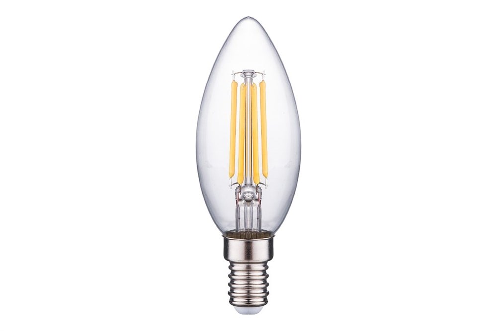 Светодиодная нитевидная лампа E14 имитирует пламя свечи. Лампа «свеча на ветру» может использоваться как самодостаточный элемент освещения без плафона. Лампа излучает приятный белый свет, который комфортен для глаз. Лампа светит очень ярко. Ее мощность 11 Вт, что эквивалентно 100 Вт лампы накаливания. Благодаря наличию нескольких нитей, угол рассеивание светового потока составляет 360°. Светодиодные нити загораются сразу после включения и практически не нагреваются в процессе работы. Филаментная лампа сочетает в себе лучшие качества ламп накаливания и современных светодиодных технологий: экономична, экологична, имеет долгий срок службы, не пульсирует. Лампа излучает яркий равномерный поток света в 990 лм. Срок службы 30 000 часов.
