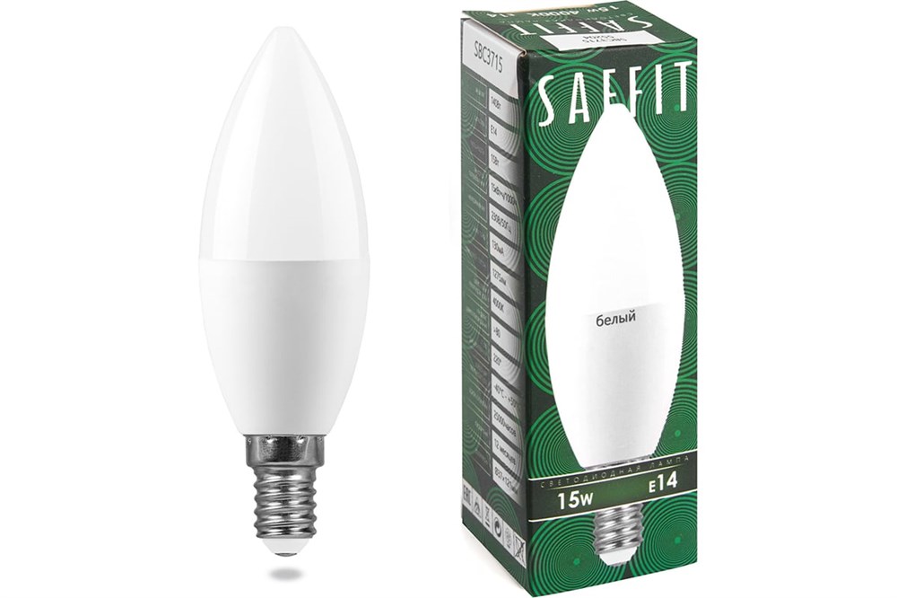 Лампа светодиодная SAFFIT SBC3715 Свеча, 15Вт, 220В, 4000К, цоколь Е14