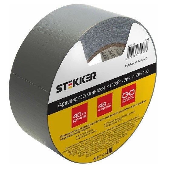 Лента клейкая (скотч) STEKKER INTP4-01748-40, 48ммx40м, толщина 0.17мм, армированная, на тканевой основе, серый