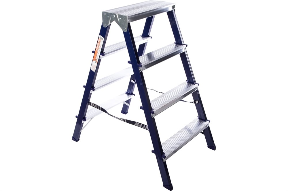 Лестница-стремянка АЛЮМЕТ MD8204, 4 ступени, высота 0.91м, двухсторонняя, стальная