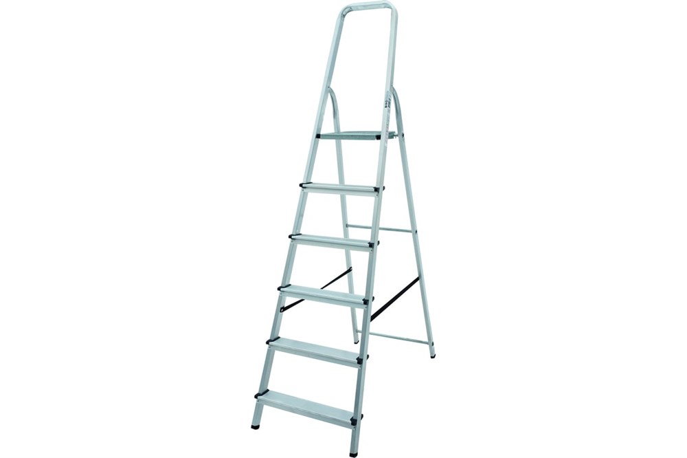 Стремянка складывается для более удобной транспортировки и компактности при хранении. Сделана из прессованного профиля и имеет надежное соединение ступеней со стойками, что обеспечивает долгий срок службы. Рифленая поверхность ступеней и площадки обеспечивает уверенный подъём и повышенную безопасность. За удобство использования отвечают большая рабочая площадка и широкие ступени.