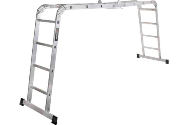 Это универсальный инструмент, который может использоваться как помост 1,26 м, стремянка 2,35 м или телескопическая лестница 4,77 м. Она состоит из 4 секций по 4 ступени в каждой, которые могут раскладываться и складываться в различных комбинациях. В складном состоянии лестница-трансформер занимает мало места.