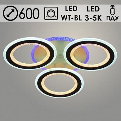 Люстра подвесная светодиодная 55616/3, диаметр 600мм, 2x97Вт+2x16Вт WT+BLUE LED, 3000-5000K, ПДУ, диммер, белый