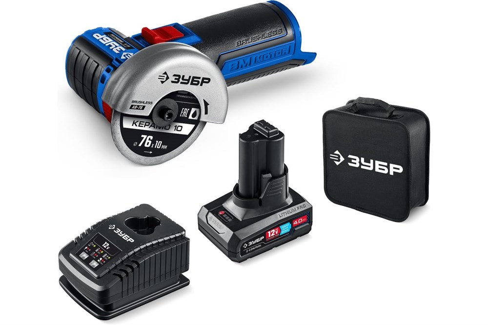Машина углошлифовальная (болгарка) аккумуляторная ЗУБР Профессионал AB-76-42, 76мм, 20000 об/мин, бесщеточная, 2 АКБ, в сумке