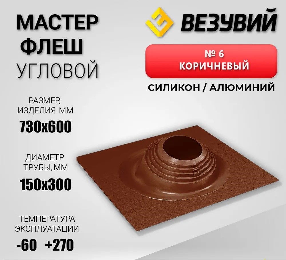 Кровельная проходка мастер - флэш предназначена для герметизации стыка кровли с трубами, будь то вентиляция или дымоход. Удобно подходит для установки на прямые кровли и кровли с разными углами уклона от 30 до 60 градусов. Мастер - флеш изготовлен из термостойкого силикона по европейскому образцу качества с добавлением добавлением алюминия для повышения его срока службы и температурной стойкости от -60 до 270 градусов.