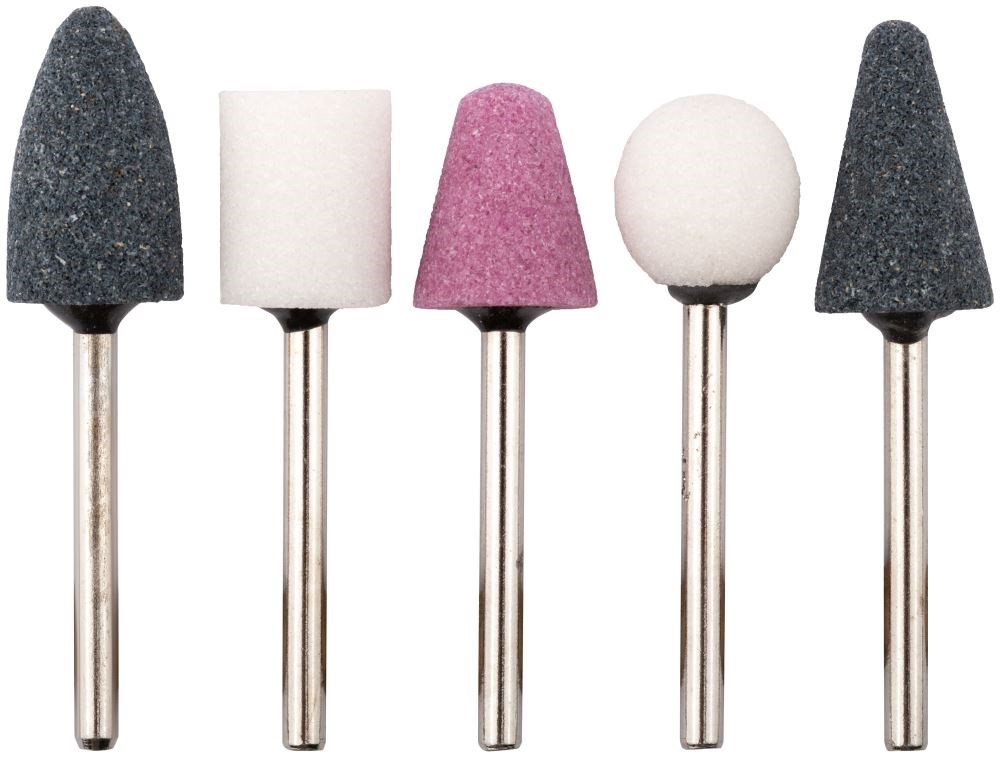 Используется для обработки изделий из камня с помощью прямошлифовальной машины. Предназначены для доводки фигурных отверстий. В набор входят насадки, предоставляющие возможность обработки поверхностей различного профиля. Изготовлены из корунда и карбида кремния.