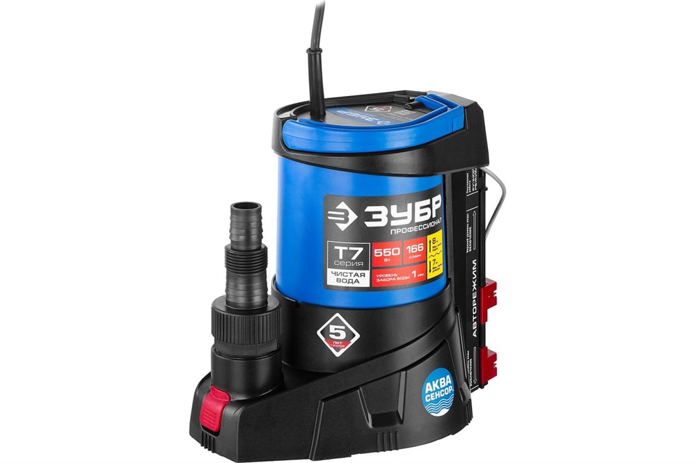 Насос ЗУБР Профессионал НПЧ-Т7-550 АкваСенсор, погружной, дренажный, с минимальным уровнем откачки, 550Вт