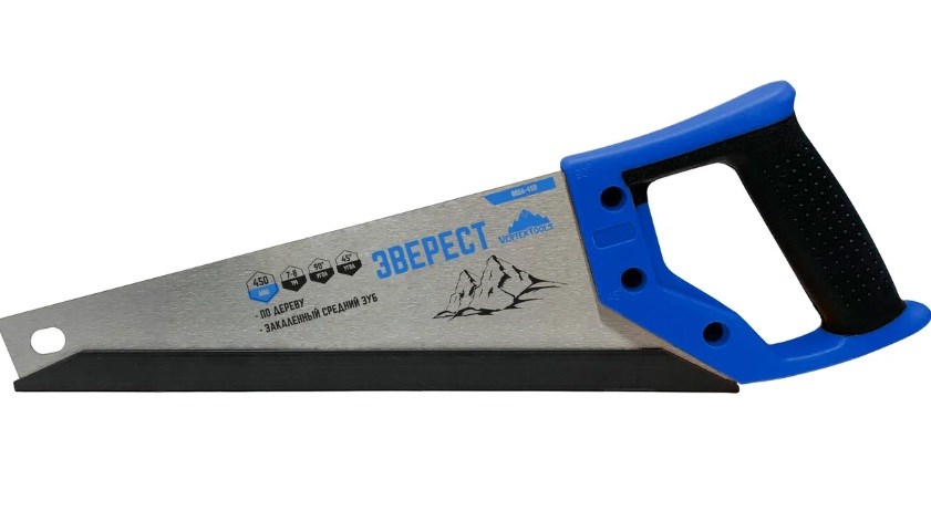 Ножовка по дереву Vertex Эверест, 450мм, каленый зуб, двухкомпонентная рукоятка