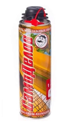 Очиститель пены - аэрозольный баллон с ацетоном. Универсальным очистителем монтажной пены можно растворить и очистить свежие пятна, оставленные монтажной пеной на одежде и поверхности любого материала, отмыть руки. Очиститель пены также применяется для промывки профессиональных инструментов — пистолетов для пены.