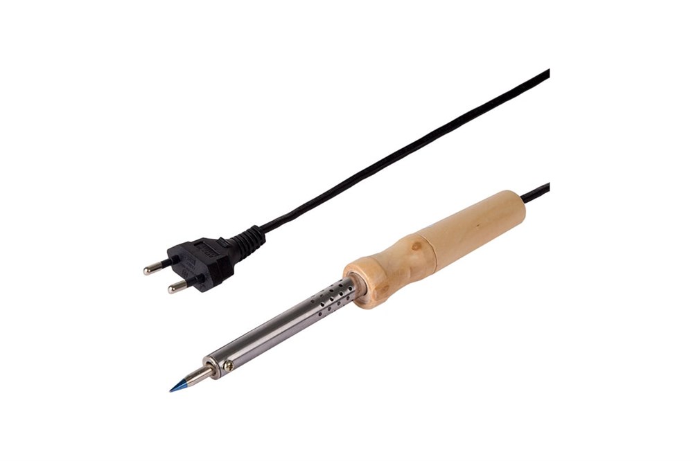 Паяльник с деревянной ручкой предназначен для ручного монтажа/демонтажа деталей среднего и крупного размера, а также для лужения. Долговечное жало паяльника состоит из медьсодержащего сердечника, покрытого слоем хрома. В случае необходимости его можно легко и быстро заменить (сменное жало в комплект не входит). Удобная эргономичная рукоятка выполнена из дерева, что делает работу с инструментом легкой и приятной.