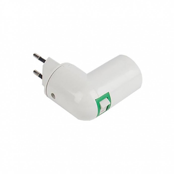 Переходник вилка-патрон позволяет с легкостью создать светильник, использующий в качестве источника света лампу с цоколем Е27. Переходник имеет выключатель, поэтому достаточно установить переходник в розетку сети электроснабжения для его работы. Переходник изготовлен из пластика белого цвета.
