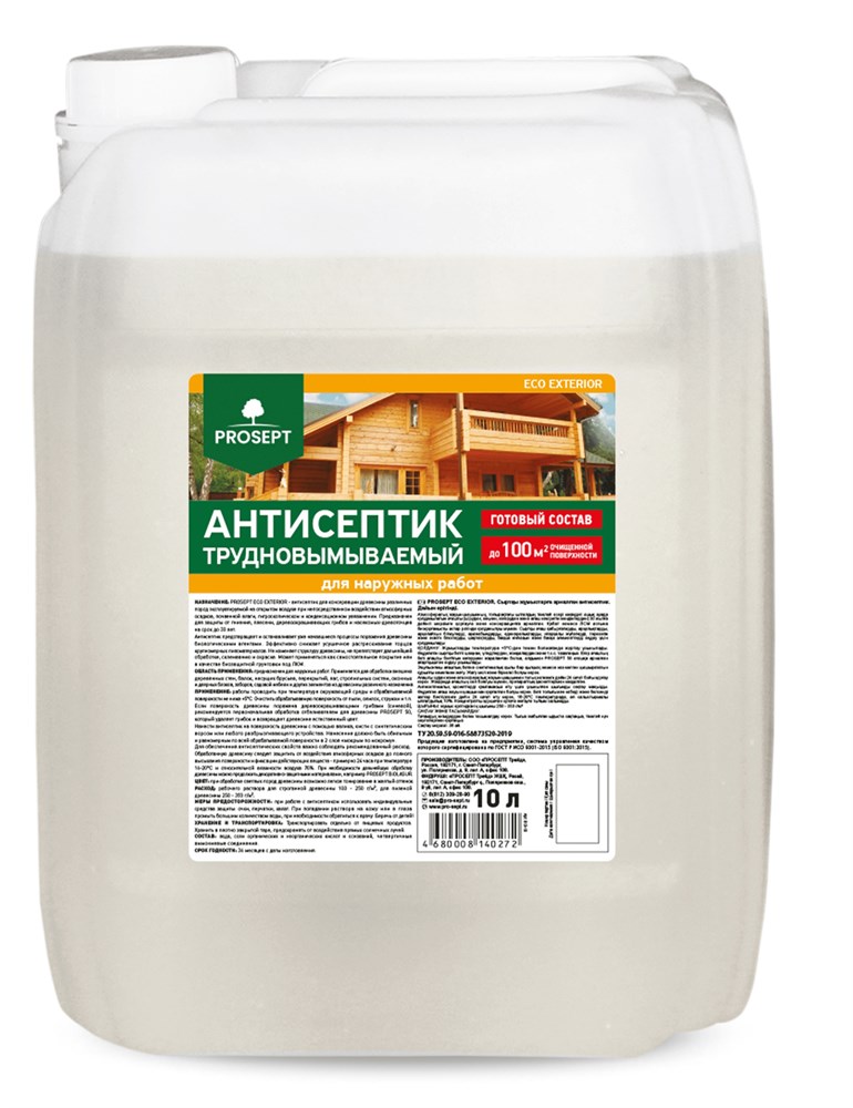 Покрытие защитное (антисептик) PROSEPT ECO EXTERIOR, 10л, для наружных работ