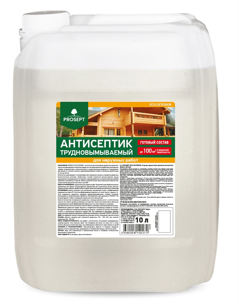 Покрытие защитное (антисептик) PROSEPT ECO EXTERIOR, 10л, для внутренних работ