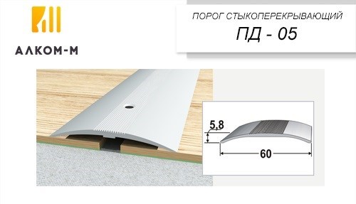 Порожек выполнен из прочного сплава алюминия способного выдержит высокую проходимость людей и провоз тяжёлых тележек. Использование данного профиля, лучше всего подойдёт для коммерческих помещений, ведь анодированное покрытие наиболее устойчиво к царапинам в отличие от ламинированного или крашенного. Профиль точно такой же формы вы можете купить в нашем магазине с крашенным или ламинированным покрытием под дерево. Разнообразная цветовая гамма порога, имитирующая рисунок дерева, позволит подобрать профиль в цвет пола, что сделает стык максимально незаметным.