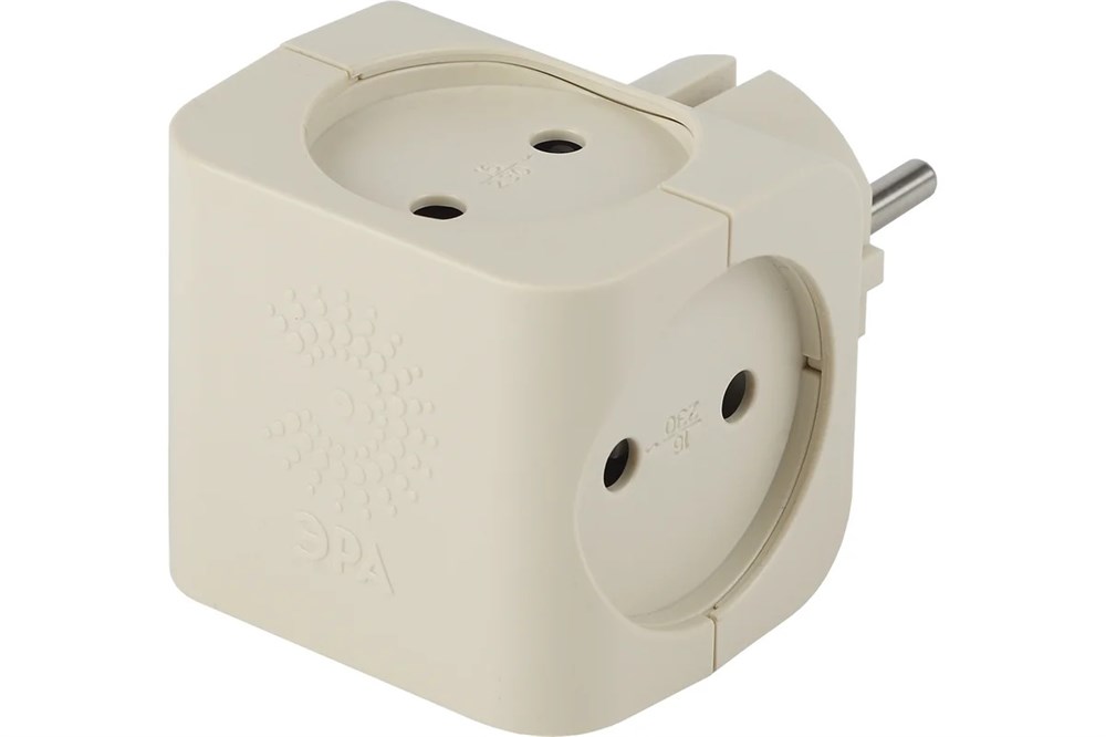 Разветвитель/тройник ЭРА SP-4-I Б0008206, четырехместный, без заземления, куб, слоновая кость