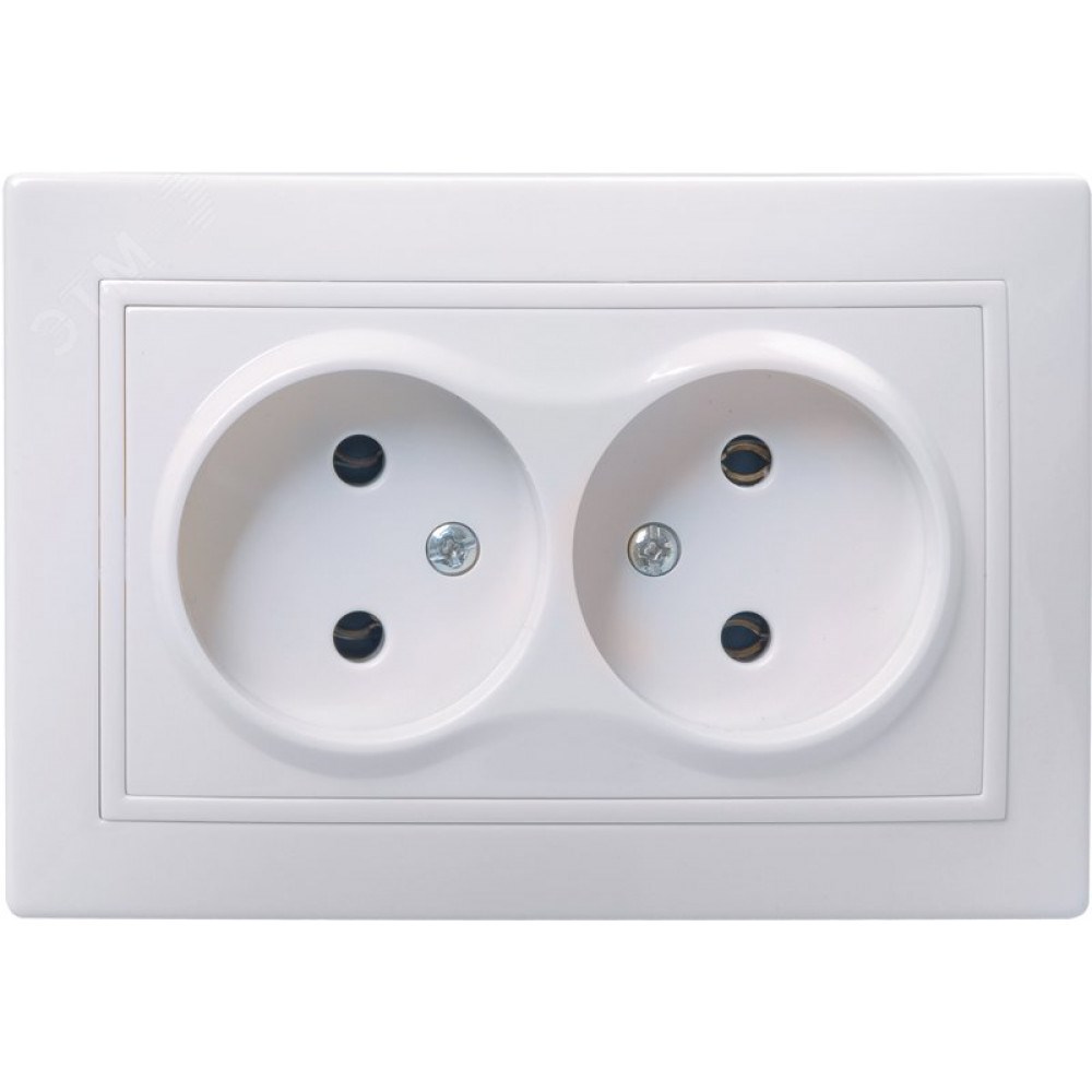 Розетка IEK ERК01-K01-10-DМ Кварта, двухместная, встраиваемая, без заземления, белая