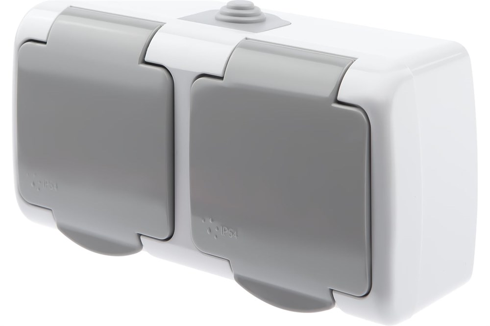Розетка INTRO Atlantic 5-203-03, двухместная, накладная, с заземлением, с защитной крышкой, серая
