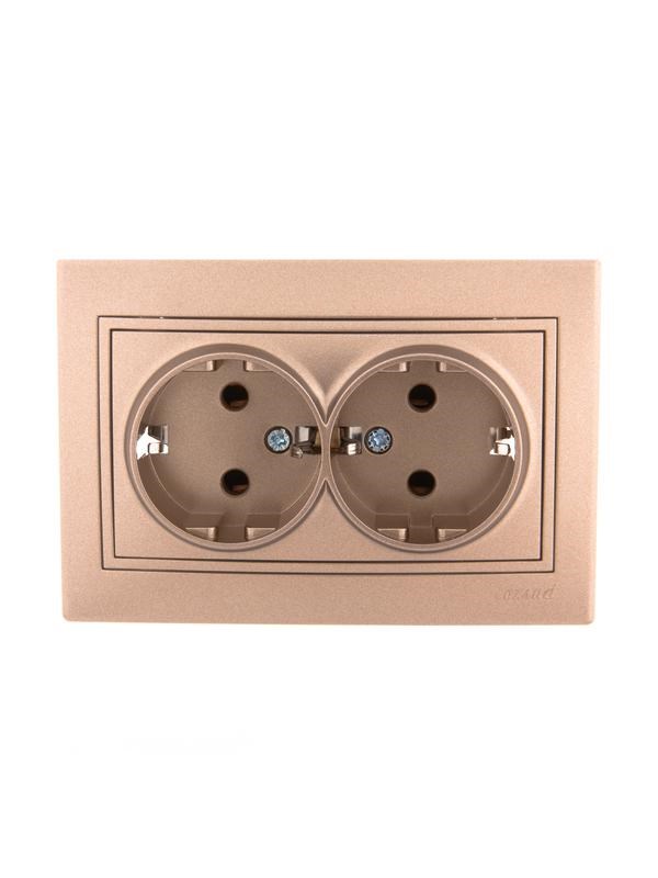 Розетка LEZARD 701-3131-127 Мира, двухместная, встраиваемая, с заземлением, светло-коричневый перламутр