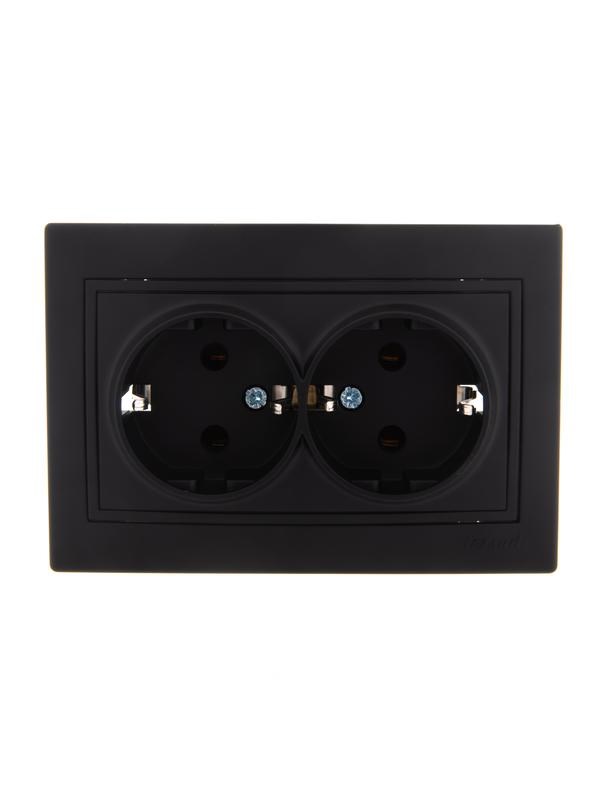Розетка LEZARD 701-4242-127 Мира, двухместная, встраиваемая, с заземлением, черный бархат