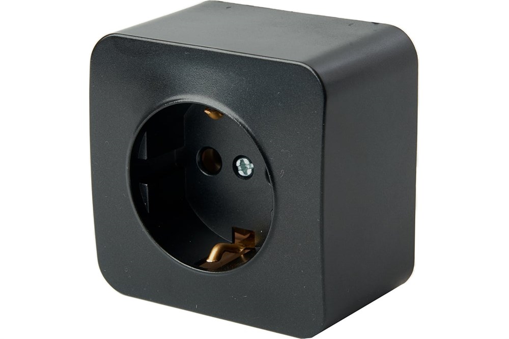 Предназначена для внутренней установки. Корпус выполнен из качественного ABS пластика черного матового цвета. Размер розетки составляет 60x60x40 мм. Она рассчитана на работу при номинальном напряжении 250 В и номинальном токе 16 А. Диапазон рабочих температур от 0 до +35°C.