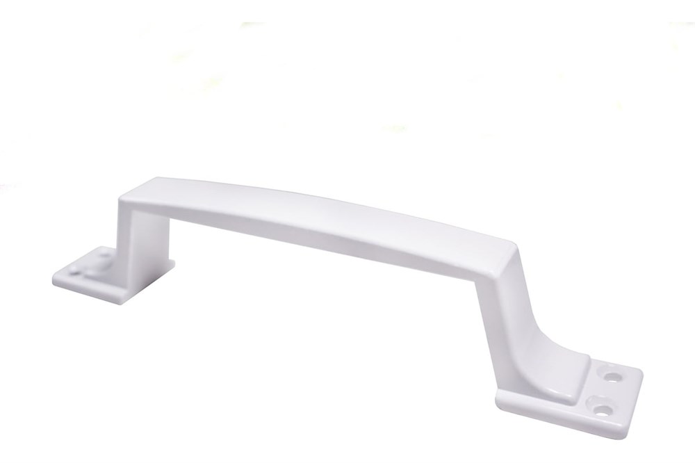 Ручка-скобка изготовлена из сплава алюминия, благодаря чему обладает легкостью и высокой прочностью. Правильная форма ручки без пустот и ребристых элементов делает её удобной для использования. Возможна установка на любую деревянную дверь внутри или снаружи помещения с помощью саморезов, которые входят в комплект.