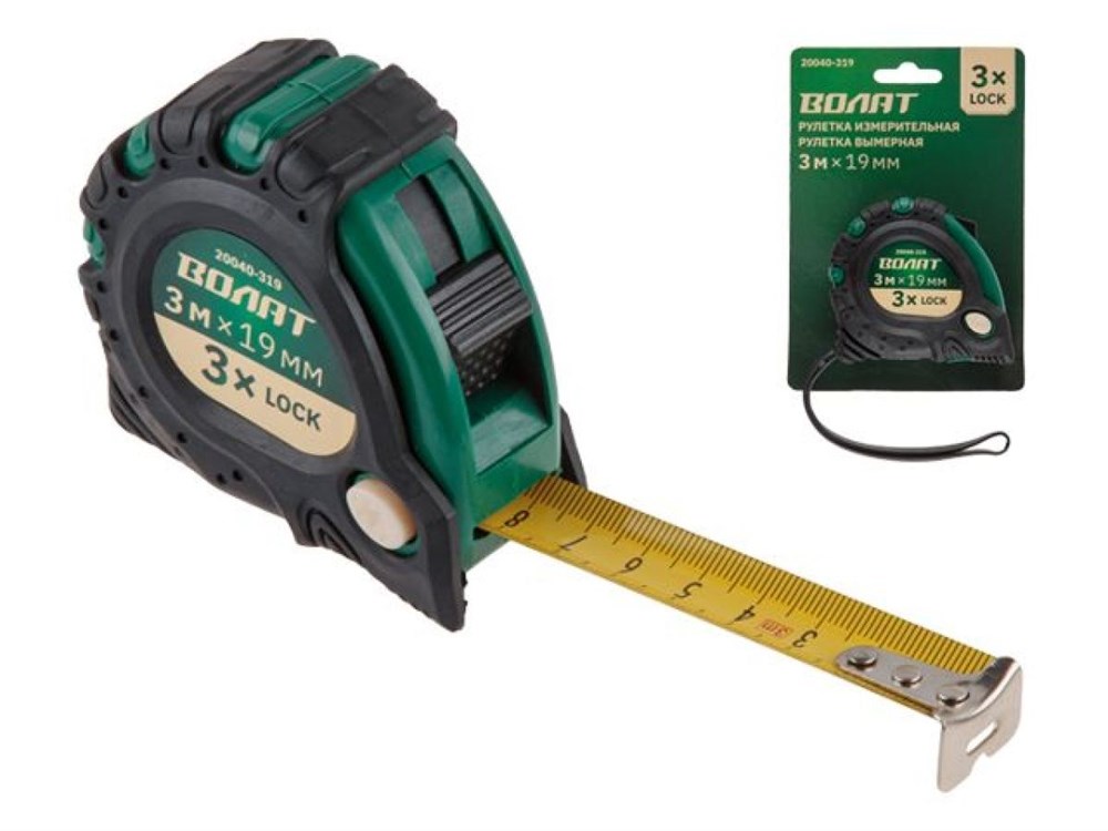 Рулетка ВОЛАТ 20040-319, 3м, 19мм, обрезиненный корпус, бытовая