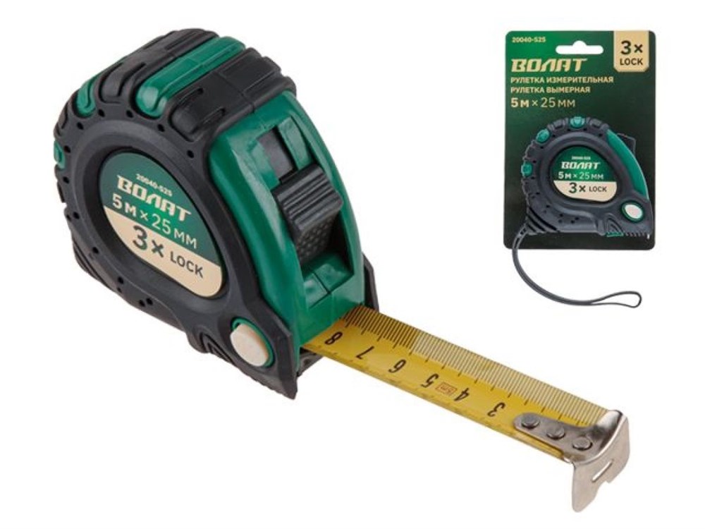 Рулетка ВОЛАТ 20040-525, 5м, 25мм, обрезиненный корпус, бытовая