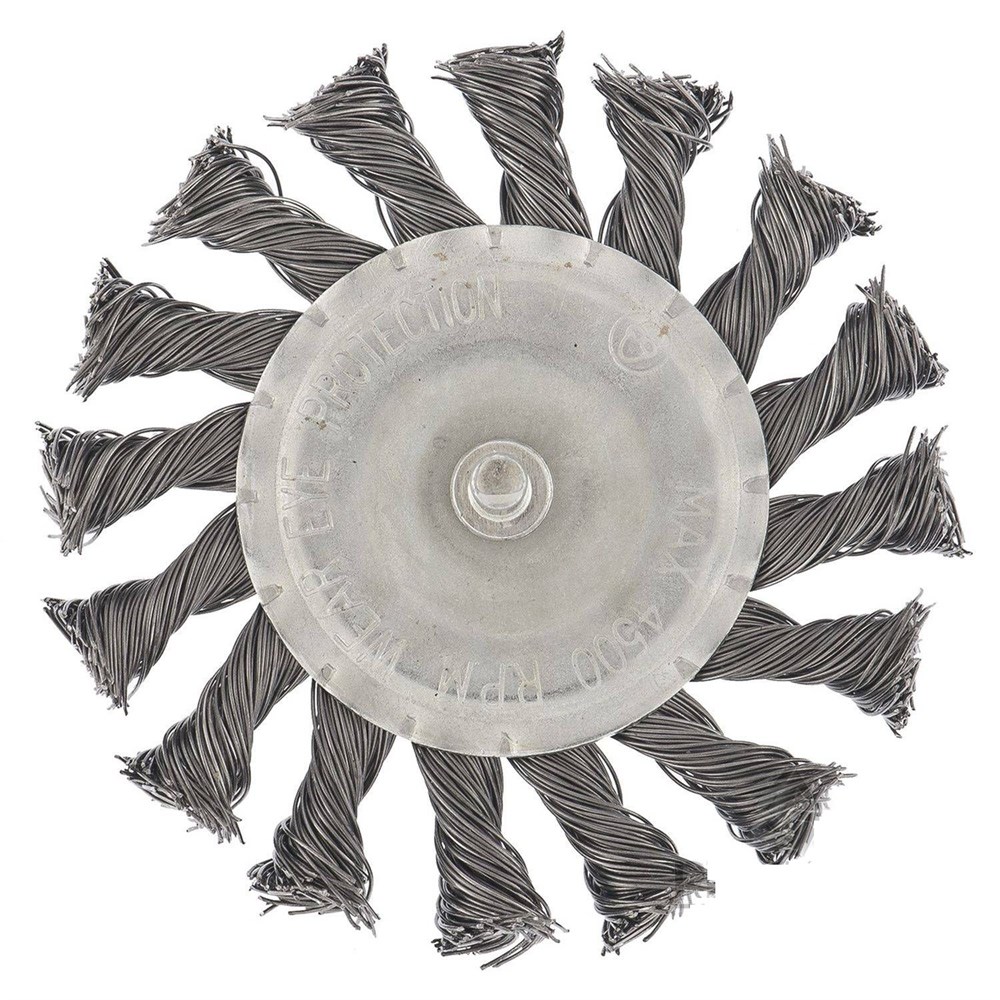 Щётка для дрели СИБРТЕХ, 100мм, плоская, со шпилькой, крученая металлическая проволока 0.5мм
