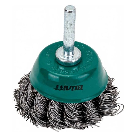Щётка для дрели ВОЛАТ 81020-75, 75мм, "чашка", со шпилькой, крученая металлическая проволока 0.5мм