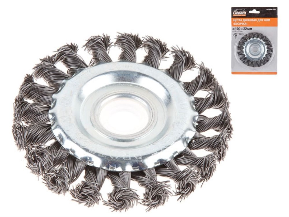 Щётка для УШМ GEPARD, 125х22мм, дисковая, крученая металлическая проволока 0.5мм