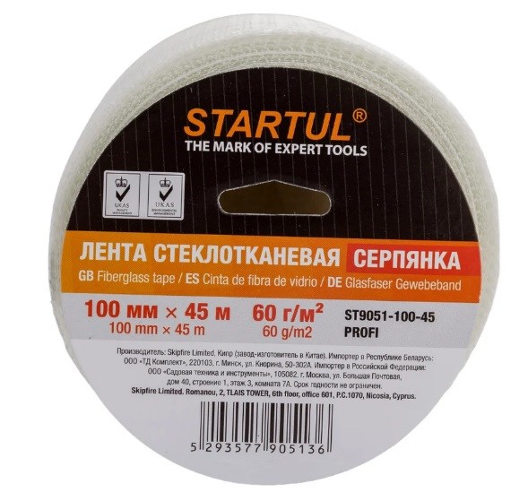 Стеклотканевая лента серпянка STARTUL Profi применяется при штукатурных работах для проклейки стыков гипсокартона и других листовых материалов.