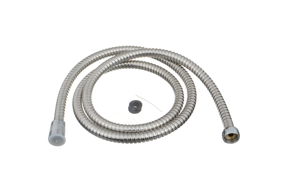 Шланг для душа ПВХ с оплеткой из нержавеющей стали, диаметр 14 мм, длина 150 см, двойной зажим, защита от перекручивания ANTI-TWIST. Присоединение к смесителю с помощью накидной гайки 1/2" (16 мм), а к лейке - с помощью конусной накидной гайки 1/2" (16 мм). Шланг подходит к импортным смесителям и лейкам.