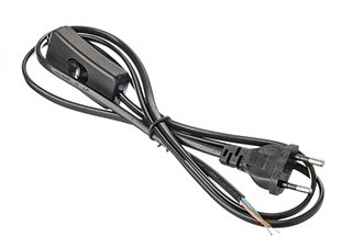 Шнур содержит выключатель и плоскую вилку, подходящую к любому типу розеток европейского или российского стандартов.