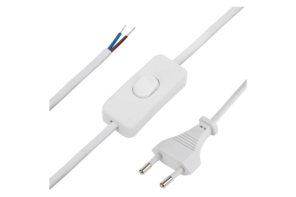 Сетевой шнур с выключателем предназначен для подключения бытовых приборов, осветительной техники и т. д. Шнур состоит из провода ШВВП сечением 0,75 мм?, укомплектованного литой неразборной плоской вилкой (Евро), номинальным током 4 А, с подготовленными (зачищенными и лужеными) контактами, посередине провода расположен выключатель в корпусе из ABC пластика.