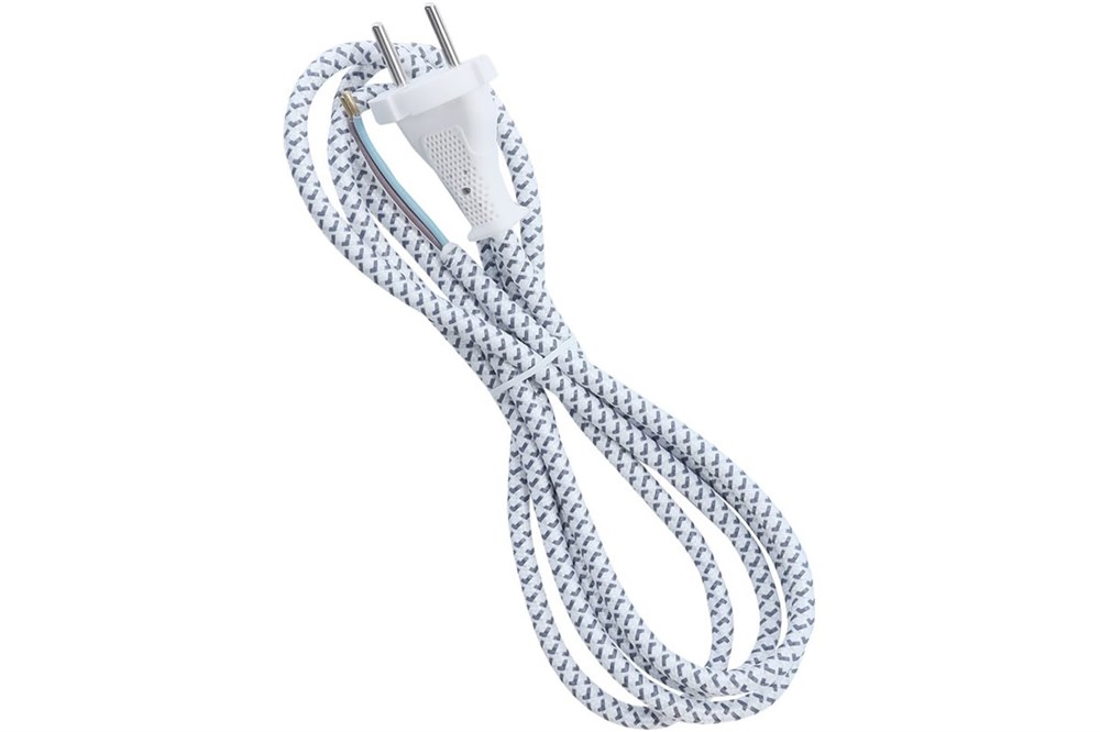 Сетевой шнур с вилкой в тканевой оплетке подходит к любому типу розеток как европейского, так и российского стандартов. Отличается простотой монтажа. Это идеальное решение для подключения утюга и других бытовых приборов.
