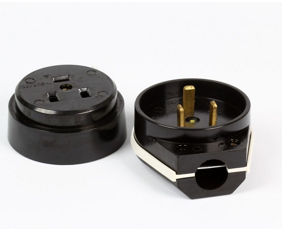 Разъём РШ-ВШ предназначен для организации подключения различного оборудования (как малой, так и большой мощности) к однофазной электрической бытовой сети напряжением 220 В и частотой 50 Гц. В конструкции устройства предусмотрено винтовое подсоединение провода к выходам. Способ установки разъема - открытый. Материал корпуса - карболит. Разъем - трехштырьковый.