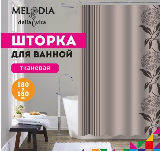 Шторка для ванной тканевая 180х180см Melodia della vita - это водонепроницаемая занавеска для ванной комнаты с 12 люверсами из нержавеющей стали и с утяжеляющей лентой, не позволяющей занавеске мяться. Упакована в мешок с ручками в цвет шторы. Стирка при температуре до +40 градусов.
