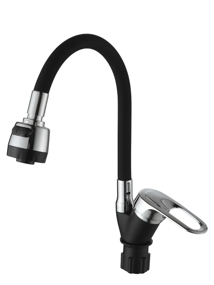 Смеситель для кухни AMMORE А5040-А, с гибким изливом, однорычажный, на гайке, черный