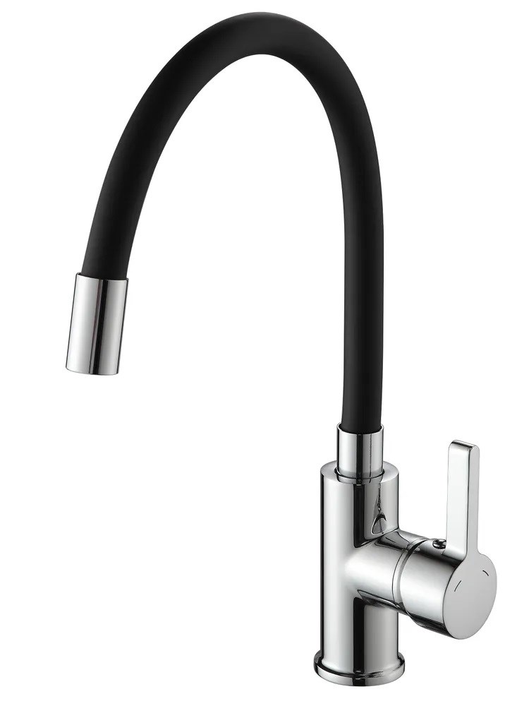 Смеситель для кухни AMMORE А5409, с гибким изливом, однорычажный, на гайке, черный