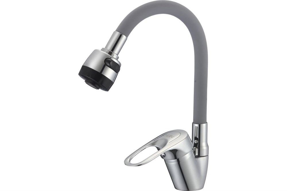 Смеситель для кухни D-LIN D150628-2T, с гибким изливом, однорычажный, серый, силикон