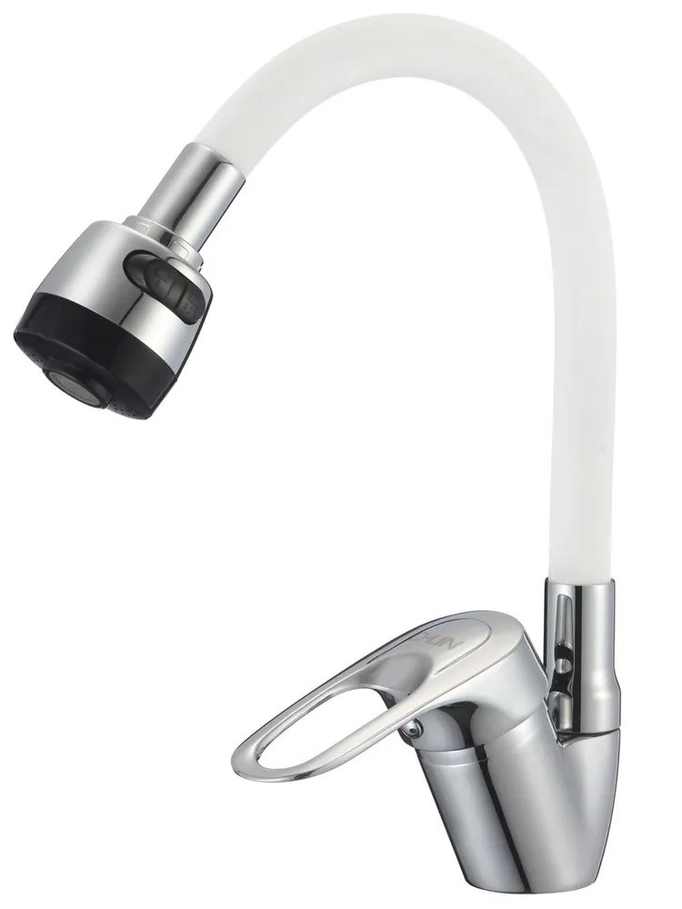 Смеситель для кухни D-LIN D150628-3T, с гибким изливом, однорычажный, белый, силикон